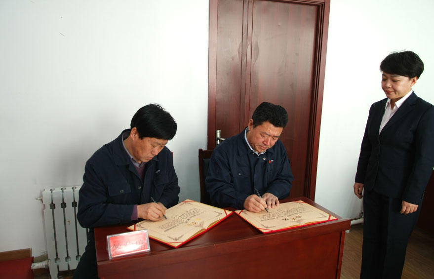 公司經(jīng)理李文生分別與生產(chǎn)、營業(yè)、監(jiān)察大隊等部門簽訂了責(zé)任狀。先進(jìn)個人代表分別發(fā)言。