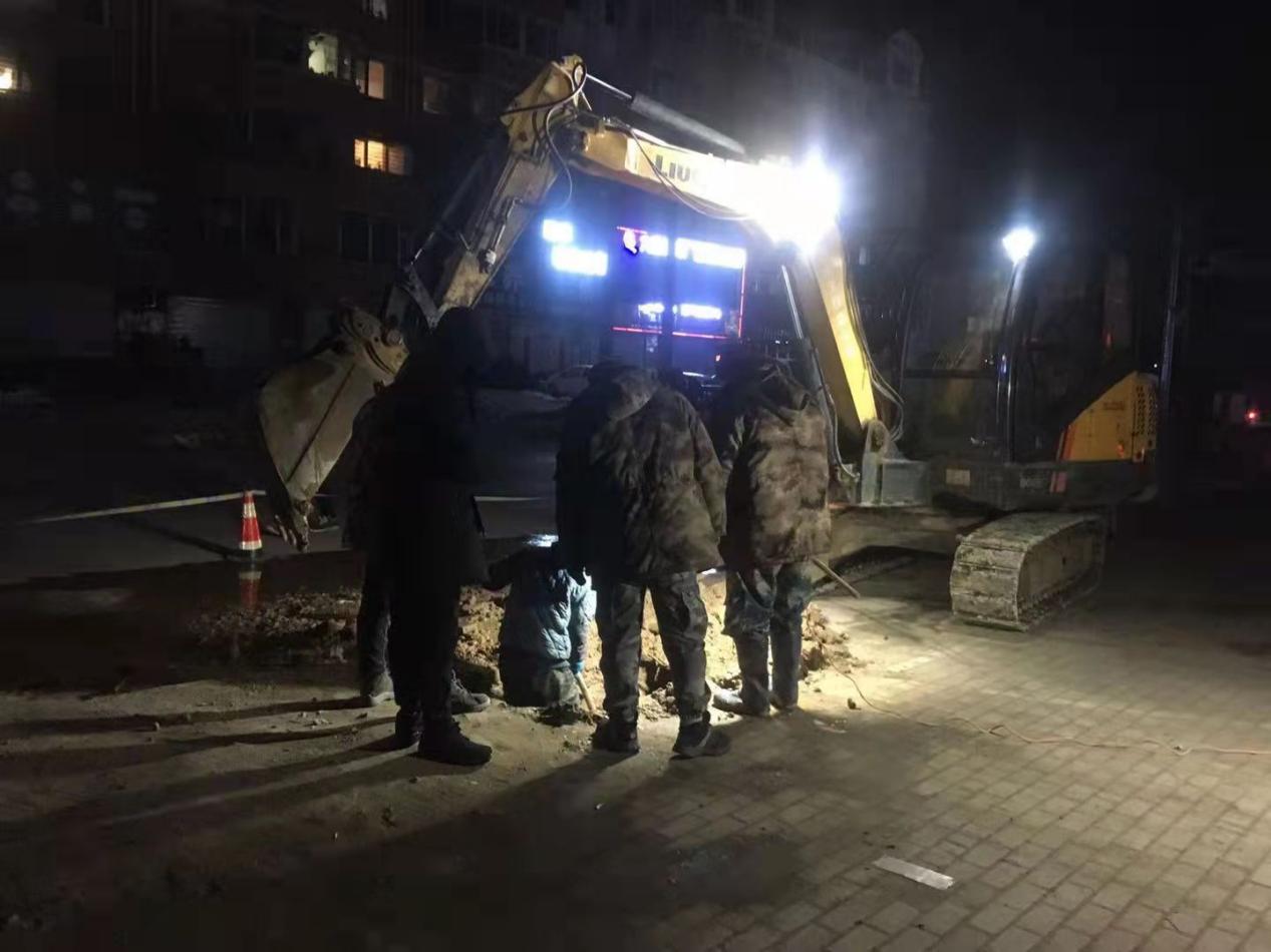 最強(qiáng)硬核搶修隊(duì)伍,實(shí)力擔(dān)當(dāng)。2月16日下午17點(diǎn)47分,工程公司接到工單,位于騰揚(yáng)嘉苑對(duì)面建筑安裝公司附近發(fā)現(xiàn)漏水現(xiàn)象。搶修人員立即趕往施工現(xiàn)場(chǎng),在勘察現(xiàn)場(chǎng)具體情況的同時(shí),對(duì)現(xiàn)場(chǎng)拉起警戒線。經(jīng)勘查初步判斷此處漏損管線為DN200管線。搶修過程中采用鉤機(jī)、炮錘等對(duì)路面進(jìn)行開挖,挖出一條長4米,寬1米,深2.5米左右的溝,因壓力關(guān)系,爆裂處噴射近5米高水柱,維修人員隨后采用水泵進(jìn)行抽水,待具備施工作業(yè)條件時(shí),工作人員用H200卡具進(jìn)行固定,整個(gè)搶修用時(shí)約3小時(shí),于晚9點(diǎn)搶修完畢。他們專業(yè),他們頑強(qiáng),他們無畏,他們敢拼,他們是一支名副其實(shí)的的硬核搶修隊(duì)伍。