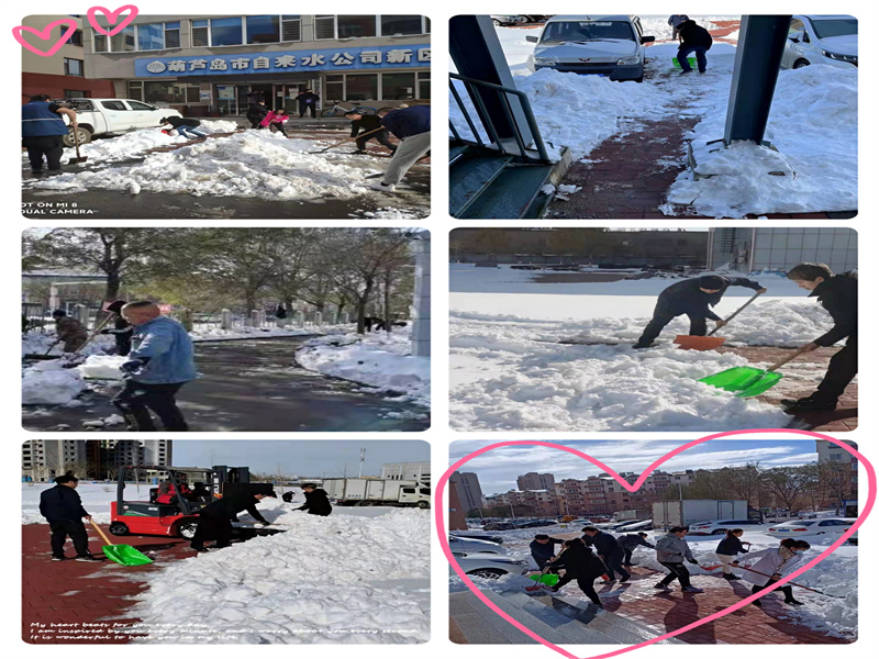 早晨寒冷的飛雪還沒有停,道路不通、公交停運(yùn),許多同志步行很長(zhǎng)時(shí)間來(lái)到工作崗位,第一件事就是清除公司院內(nèi)外、水廠周圍、營(yíng)業(yè)大廳門前等道路積雪。大家不顧天氣寒冷,掃積雪、鏟冰層、清雜物,干得熱火朝天。黨員干部率先垂范,以實(shí)際行動(dòng)踐行“我為群眾辦實(shí)事”的初心使命,展示出黨員干部團(tuán)結(jié)協(xié)作的良好精神風(fēng)貌。風(fēng)雪雖大,卻敵不過眾志成城。公司干部職工齊心協(xié)力,經(jīng)過幾小時(shí)的共同奮戰(zhàn),及時(shí)保證了公司院內(nèi)外、各廠區(qū)、營(yíng)業(yè)大廳道路的安全暢通,營(yíng)造了和諧、友愛的社會(huì)環(huán)境,展現(xiàn)了員工良好的集體責(zé)任感和團(tuán)隊(duì)協(xié)作精神。