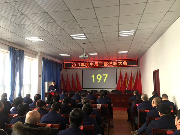 會上,公司綜合部、黨委工作部、財務處等15個部門負責人分別代表本部門對一年來的工作進行述職。隨后,參會人員對中層干部及部門進行了民主測評。