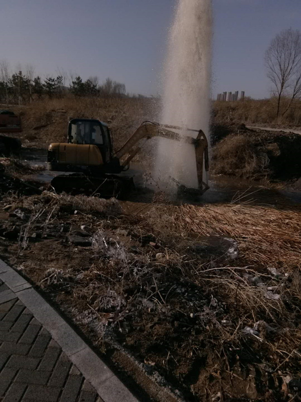 12月24日,星期日,上午10時30分左右,位于市工業(yè)學校后側的龍繡街河道內的自來水DN1000管線在疏通河道的施工中被損壞,該管線是老合臺凈水廠向新區(qū)供水的主管線,管線內壓力很大,自來水從管線內噴出,形成10多米高的水柱,噴射到人行道上。