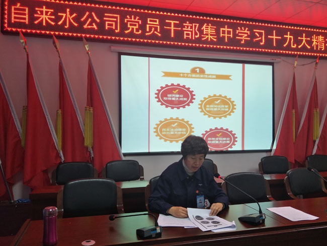 11月2日上午,市自來(lái)水公司組織黨員干部在大會(huì)議室集中學(xué)習(xí)十九大精神。會(huì)議由公司經(jīng)理、黨委副書記李文生主持,公司領(lǐng)導(dǎo)班子擴(kuò)大成員、中層正副職干部共30余人參加了學(xué)習(xí)會(huì)議。