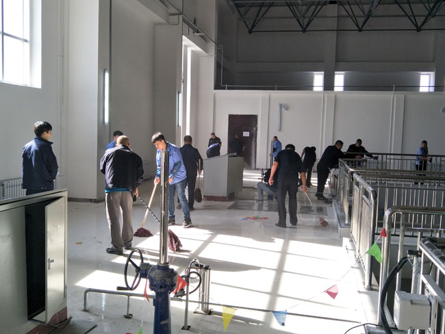 備受矚目的市委市政府重點(diǎn)民心工程青山水源二臺子凈水廠建設(shè),現(xiàn)已基本完工,水廠即將向我市城區(qū)供水。為凈化廠區(qū)環(huán)境,確保安全供水,公司組織廣大黨員、青年團(tuán)員100余人對新建的凈水車間、泵房等進(jìn)行大掃除。上午九點(diǎn),參與人員到達(dá)二臺子水廠集合,經(jīng)過簡單的責(zé)任分工,各支部領(lǐng)取清掃工具后就投入到緊張的工作中。