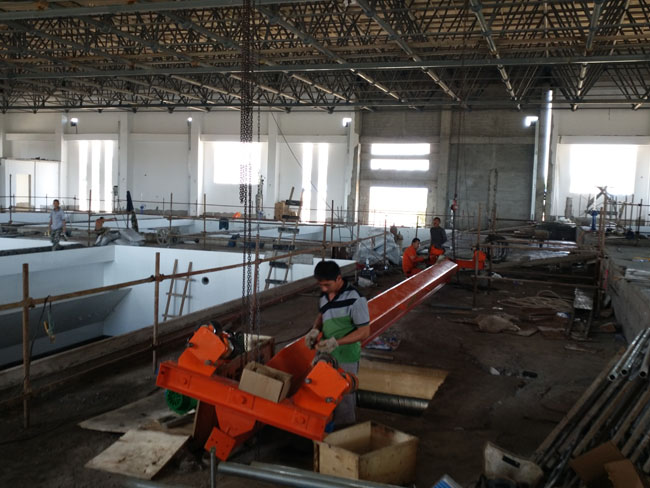 目前,該工程土建部分完成95%;廠區(qū)道路及綜合管網(wǎng)部分完成52%;工藝管線及設備安裝部分完成45%。水質檢測中心土建部分完成75%。配水干管工程,征地和設計正在同時進行中,預計10月末建成供水。水廠建成后可實現(xiàn)供水10萬噸/日,將大大改善老城區(qū)、船舶工業(yè)園區(qū)、龍港區(qū)的供水現(xiàn)狀,使供水管網(wǎng)輻射至打漁山工業(yè)園區(qū),有效改善我市供水緊張現(xiàn)狀。