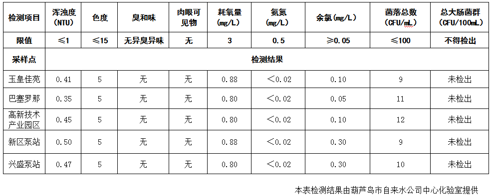 2017年7月26日葫蘆島市城市供水管網(wǎng)水質(zhì)信息