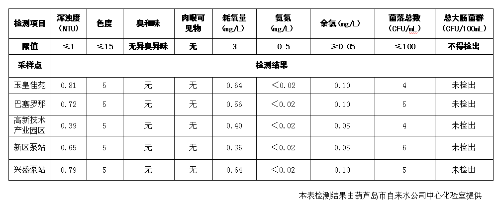2016年12月28日葫蘆島市城市供水管網(wǎng)水質(zhì)信息